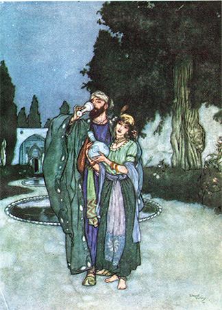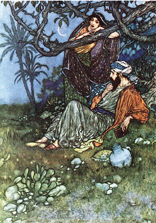 Ο Πέρσης ποιητής ψάλλει και παραψάλλει το κρασί. Αλλά όχι όπως οι διάφοροι κρασοπατέρες, οι οποίοι δεν υψούνται πολύ υπεράνω της μετριότητος. Το κρασί είναι, απλούστατα, το σύμβολον του ποιητού, επιζητούντος να πνίξη εις την απόλαυσιν του την μνήμην των ανθρώπινων ματαιοτήτων και αθλιοτήτων και τον σκεπτικισμός και την απαισιοδοξίαν της φιλοσοφίας του.