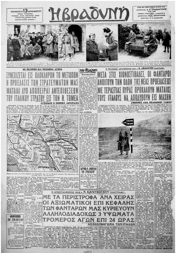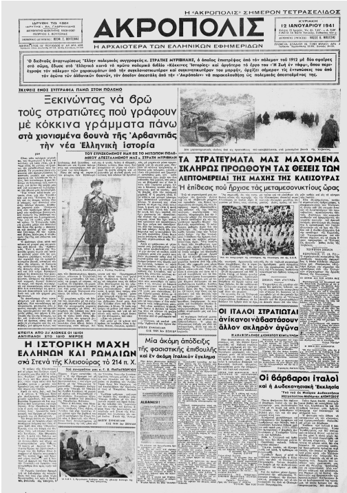 Με την ευκαιρία της συμπλήρωσης 80 ετών από την έναρξη του ελληνοϊταλικού πολέμου, ετοιμάσαμε μια επετειακή έκδοση με πρωτοσέλιδα των εφημερίδων της περιόδου 1940-1941, στρέφοντας την προσοχή μας στην πένα των πολεμικών ανταποκριτών, των ανθρώπων που με μοναδικό τρόπο κατόρθωσαν να συνδέσουν την πρώτη γραμμή του μετώπου απευθείας με τα μετόπισθεν, καταγράφοντας το μεγαλείο των Ελλήνων στρατιωτών που, μέσα από τα χαρακώματα, άφηναν με τη ξιφολόγχη τους το στίγμα τους στη νεότερη ελληνική ιστορία.