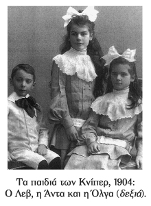 Ο Λεβ Κνίπερ, ο αδελφός της Όλγας, ήταν συνθέτης και στη διάρκεια του Εμφυλίου Πολέμου είχε πολεμήσει με τους Λευκοφρουρούς. Όταν επέστρεψε στη Ρωσία το 1921 αναγκάστηκε να εργαστεί για τη Σοβιετική Αντικατασκοπία. Στη συνέχεια, στάλθηκε στο εξωτερικό για να κατασκοπεύει Ρώσους εμιγκρέ