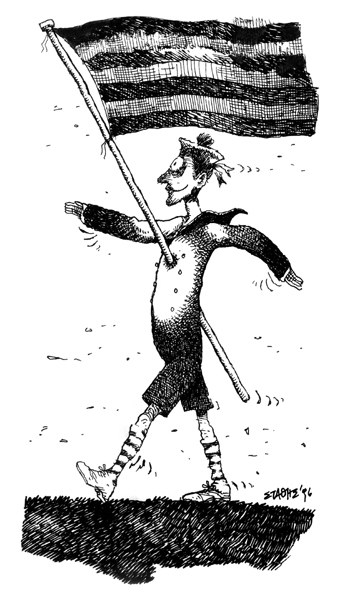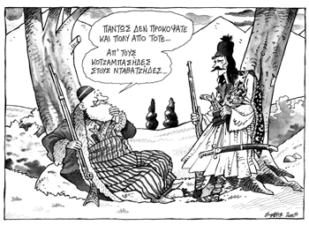 Το Έθνος ημών υφίσταται πολιτικήν τινά ζύμωσιν, καθ’ ην τα ακαθαρτότερα στοιχεία ανέρχονται και επιπλέουσιν, εν είδει εξαφρίσματος, επί της επιφανείας. Ο τοιούτος αφρός, κατέχων, κατά τους νόμους της φυσικής, τα ανώτατα στρώματα, θέλει κυβερνά, φλυαρεί και κλέπτει ασυστόλως την Ελλάδα, μέχρις ου τελειώση η ζύμωσις και λάβη ανά χείρας ο λαός την μεγάλην εξαφριστικήν κουτάλαν.