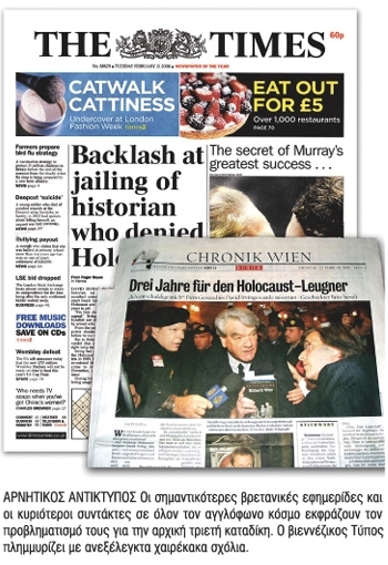 «Ναι», έγραψα κοροϊδευτικά σ’ ένα φίλο στη Βιρτζίνια των ΗΠΑ, στις 10 Νοεμβρίου του 2006: «Στις ημέρες μας γίνεται πραγματικά όλο και πιο επικίνδυνο να είναι κανείς Πραγματικός Ιστορικός. Βέβαια, τα καλά νέα είναι πως, από τότε που με απήγαγαν και με δίκασαν εδώ, στη Βιέννη, έχω λάβει γύρω στα δύο χιλιάδες γράμματα, και όλα (εκτός από δύο γράμματα γεμάτα μίσος) ήταν υποστηρικτικά, γεγονός που ανησύχησε τόσο πολύ το δικαστή, ώστε ζήτησε στα κρυφά ειδική προστασία στην αίθουσα του δικαστηρίου (τη μεγαλύτερη της Αυστρίας) κατά την ημέρα της δίκης, σίγουρα για το ενδεχόμενο που θα έκαναν την εμφάνισή τους δύο κρυμμένες μεραρχίες των Waffen SS με πλήρη εξάρτυση μάχης και με επικεφαλής τον Otto Skorzeny, έτοιμες να με σώσουν! Η παράνοιά τους εδώ είναι απύθμενη».